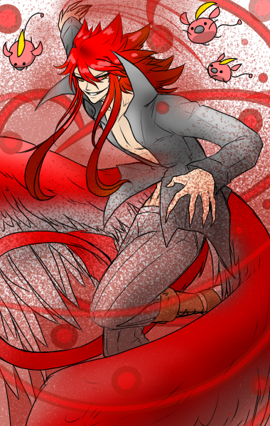 彼の色が赤一色に染まる時、血のように染まった紅い月を呼び起こす。